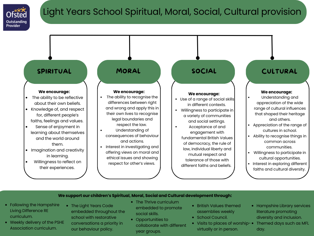 At Light Years School, we are deeply committed to fostering the holistic development of our pupils through a robust framework encompassing Spiritual, Moral, Social, and Cultural (SMSC) education. We believe that the development of the whole child is paramount, and we integrate SMSC principles throughout our teaching and school culture.