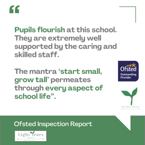 Light Years School is proud to share that we have been graded Outstanding in all areas in our first full Ofsted inspection. We are all immensely proud of this achievement and wish to thank all of our pupils, families and staff for their huge contributions to our school's journey so far. We are delighted that Ofsted saw our wonderful school in the same way we all do.